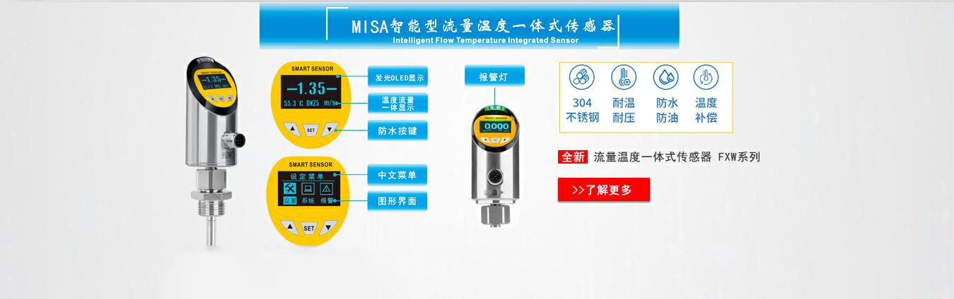 查看詳細(xì)MS-FXG 流量溫度傳感器產(chǎn)品特點(diǎn): 1、溫度和流量 一體式傳感器 2、自發(fā)光OLED;顯示清晰銳利 3、溫度智能顯示報(bào)警接點(diǎn)輸出 4、流量智能顯示報(bào)警接點(diǎn)輸出 5、中文+圖形界面;傻瓜式菜單 6、數(shù)字通信;模擬量一體式 7、精度高穩(wěn)定性好 8、耐結(jié)垢,耐腐蝕 8、全灌封設(shè)計(jì)全防水殼體 9、耐壓高、高壓型可耐壓10MPa 10、手機(jī)掃碼安裝指導(dǎo)功能;無(wú)需說(shuō)明書在線工程師專業(yè)服務(wù)